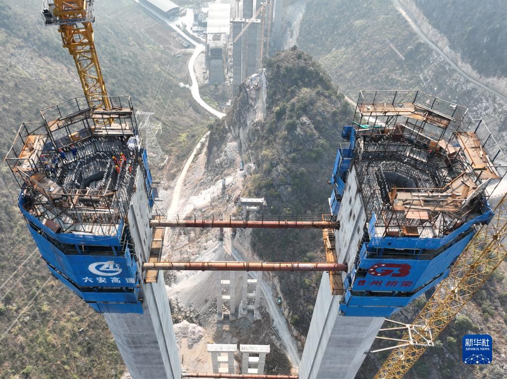 這是2月1日拍攝的花江峽谷大橋施工現場(chǎng)(無(wú)人機照片)。
