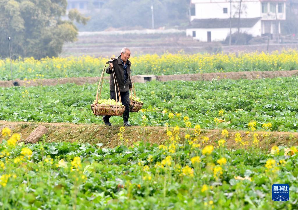2月9日,四川省廣安市廣安區花橋鎮竹林村的農民轉運青菜頭。