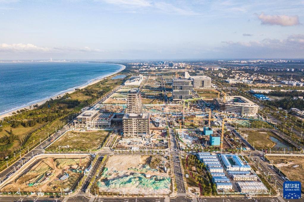 發(fā)展中的海南自貿港重點(diǎn)園區——??诮瓥|新區起步區(2月8日攝,無(wú)人機照片)。