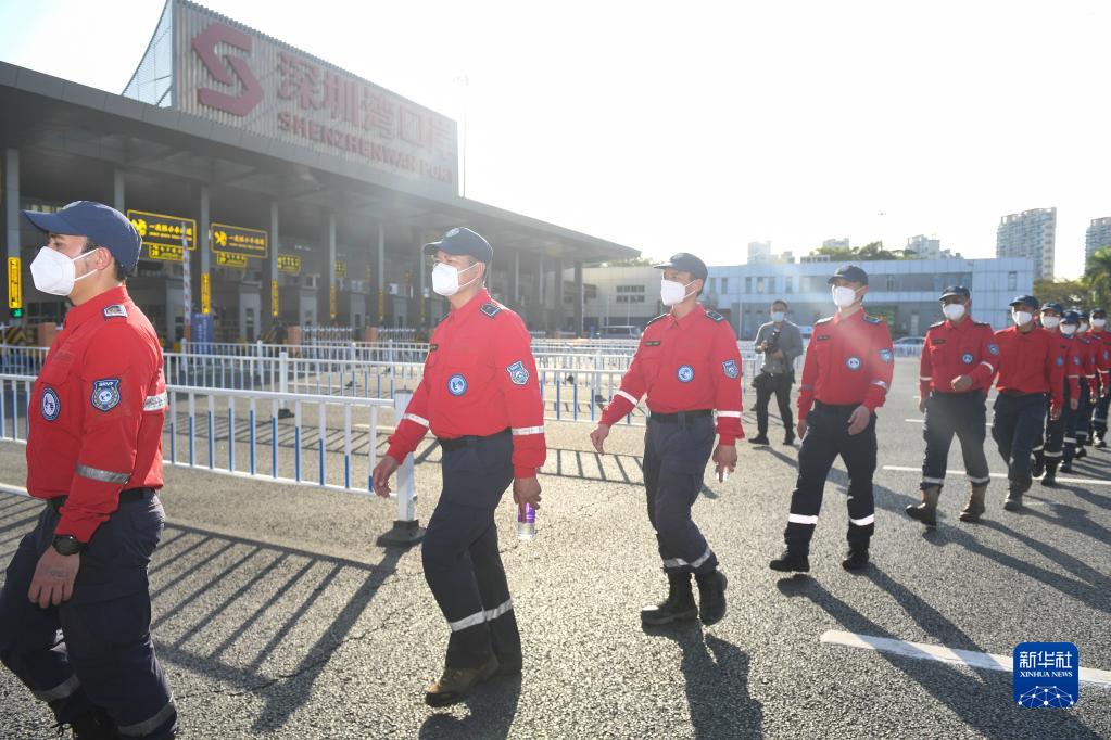 2月9日,深圳公益救援隊隊員從深圳灣口岸出發(fā)。
