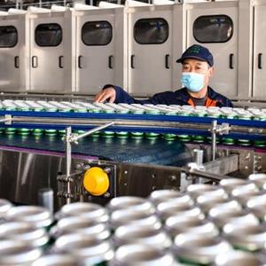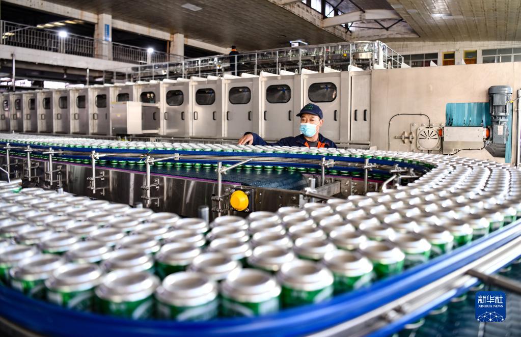 2月9日,工人在拉薩啤酒新聽(tīng)裝生產(chǎn)線(xiàn)上工作。