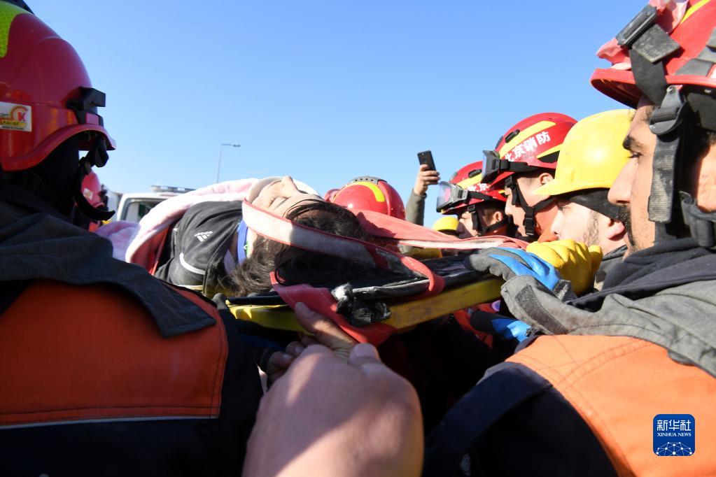 9日,在土耳其南部地震重災區哈塔伊省安塔基亞市,中土救援隊聯(lián)手救出兩名地震幸存者。