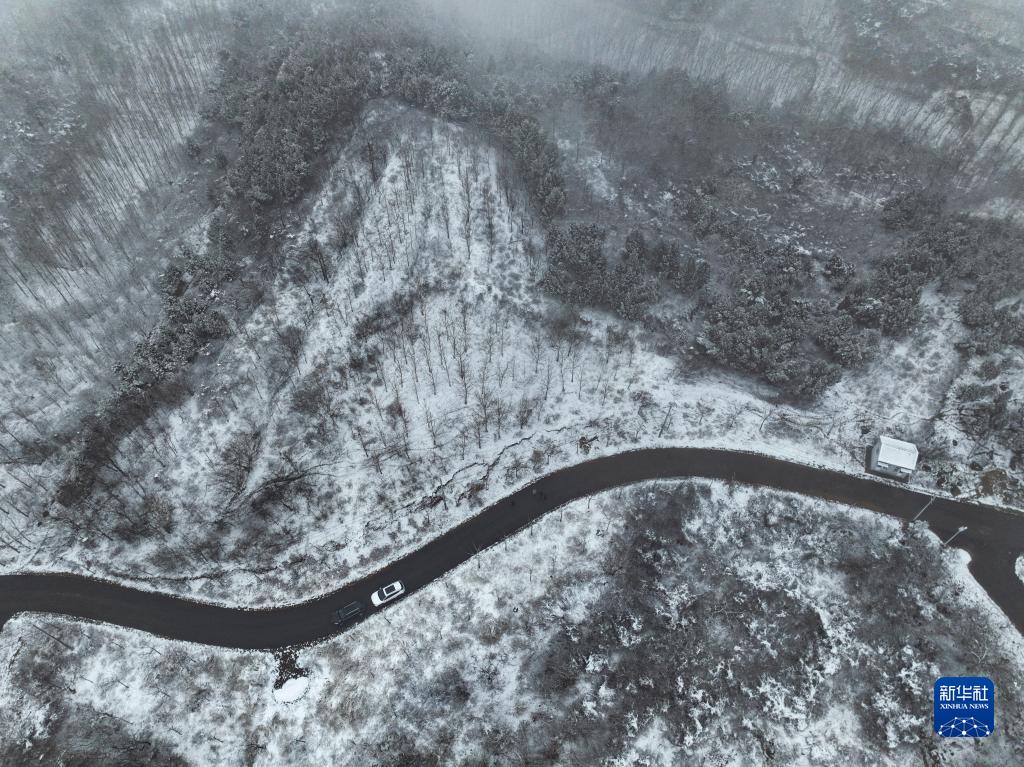 這是2月9日在河南省濟源市南山森林公園拍攝的雪景(無(wú)人機照片)。