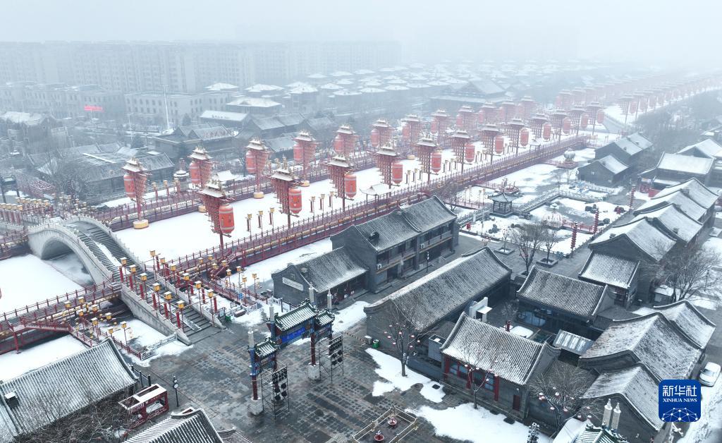 雪后的唐山市豐南區河頭老街景色(2月10日攝,無(wú)人機照片)。