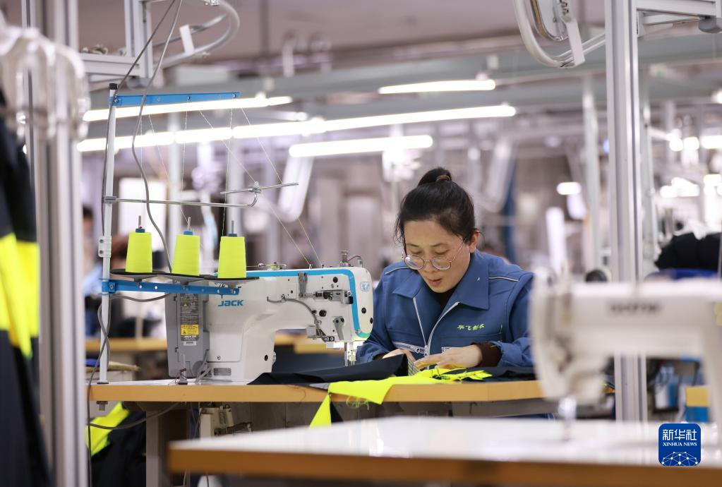 工人在河北內丘一家制衣企業(yè)生產(chǎn)車(chē)間工作(2月9日攝)。