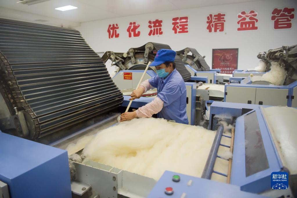 2月9日,工人在鄂爾多斯羊絨集團有限責任公司分梳廠(chǎng)作業(yè)。