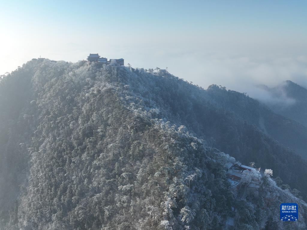 當日,雪后的河北唐山市遷西縣出現云海霧凇景觀(guān),山峰、樹(shù)木、古建筑在云霧中時(shí)隱時(shí)現,美如畫(huà)卷。