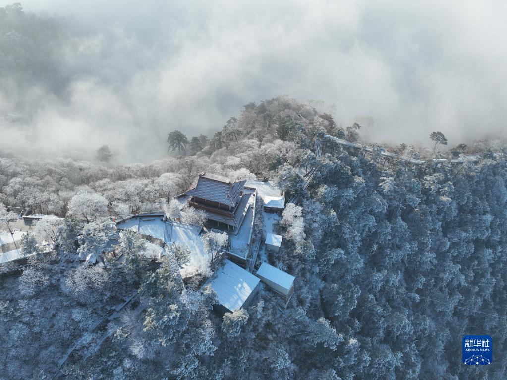 當日,雪后的河北唐山市遷西縣出現云海霧凇景觀(guān),山峰、樹(shù)木、古建筑在云霧中時(shí)隱時(shí)現,美如畫(huà)卷。