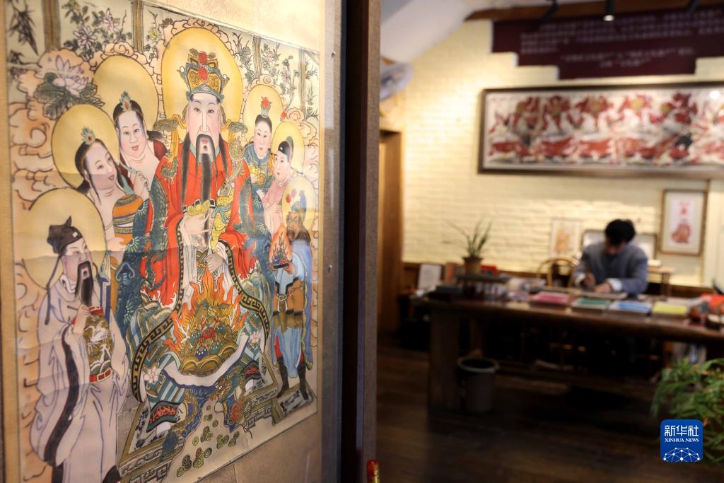 2月10日,在童壽記木版年畫(huà)工作室,童敏在進(jìn)行年畫(huà)刻版。