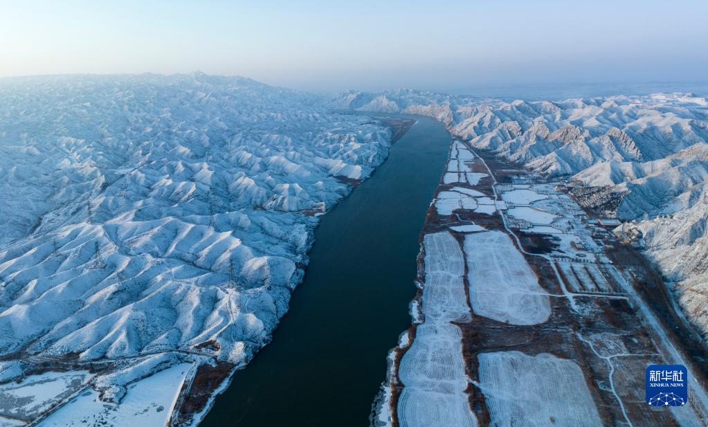 大雪過(guò)后,寧夏青銅峽黃河大峽谷銀裝素裹,黃河從峽谷間流過(guò),美如畫(huà)卷。新華社發(fā)(祁瀛濤攝)