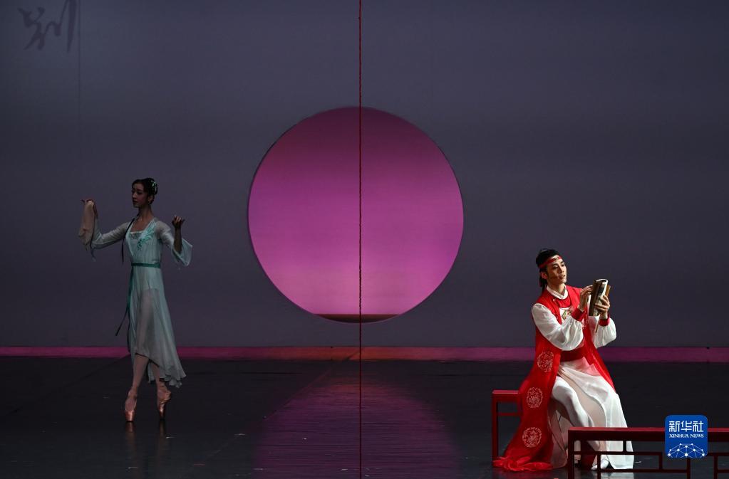 2月10日,演員黎文韜(右)、邱蕓庭在芭蕾舞劇《紅樓夢(mèng)》中分別飾演賈寶玉、林黛玉。