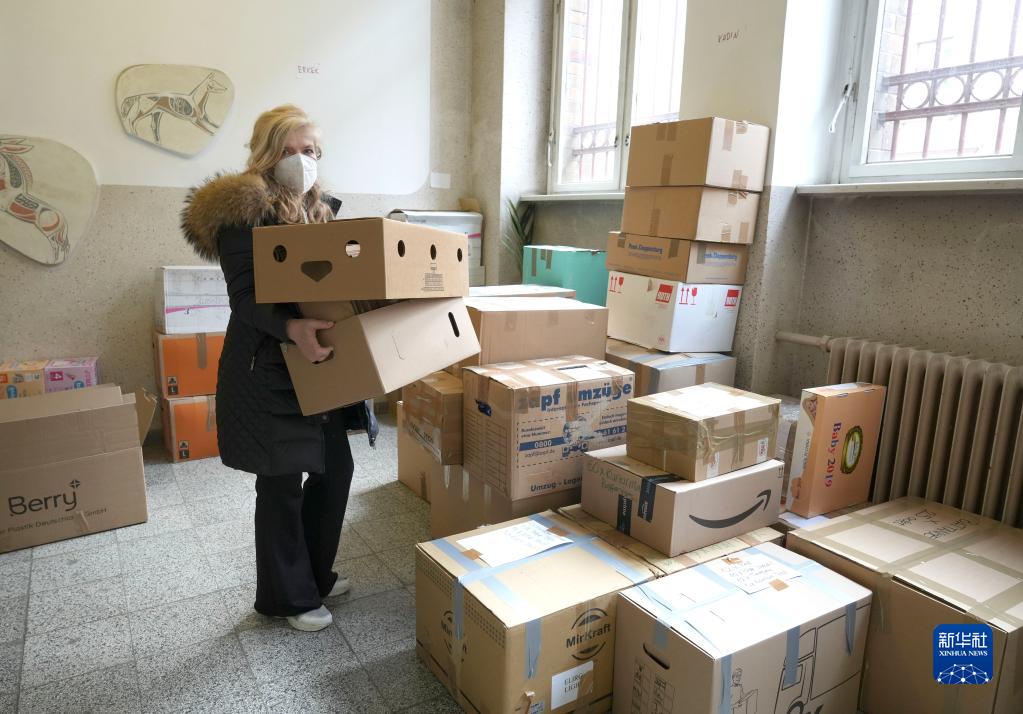 2月10日,在德國柏林,一名女子整理為土耳其震區籌措的救援物資。