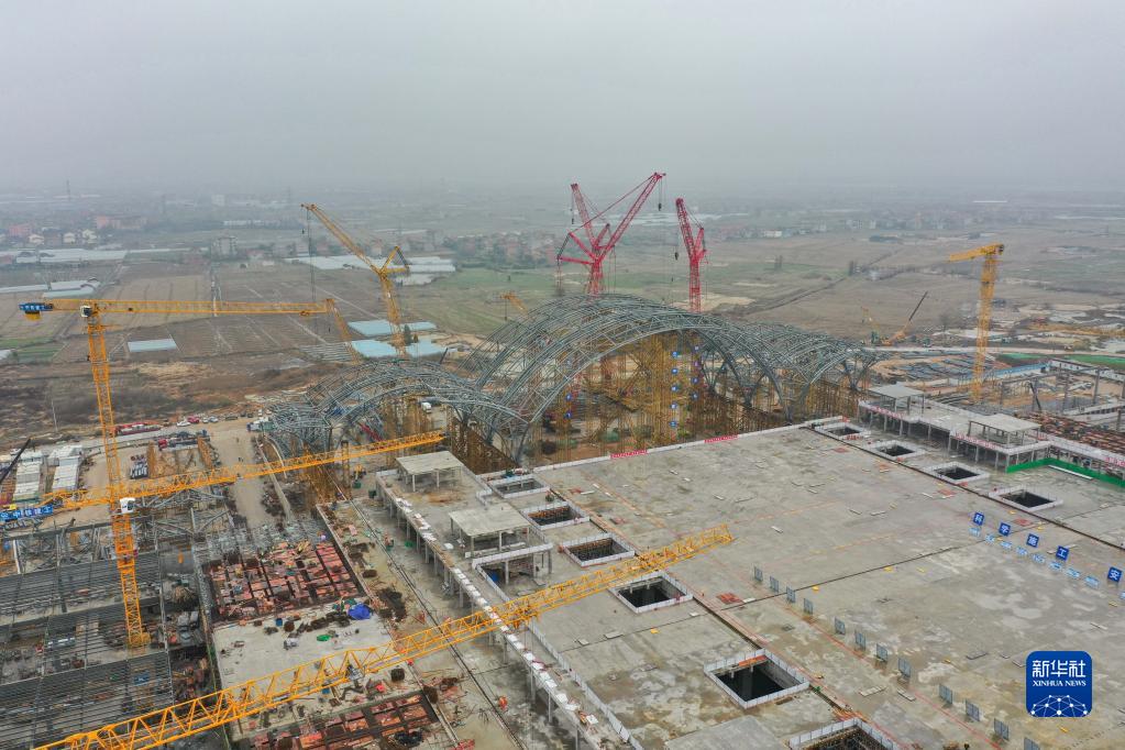 近期,由中鐵建工集團承建的南昌東站站房正在加緊施工。