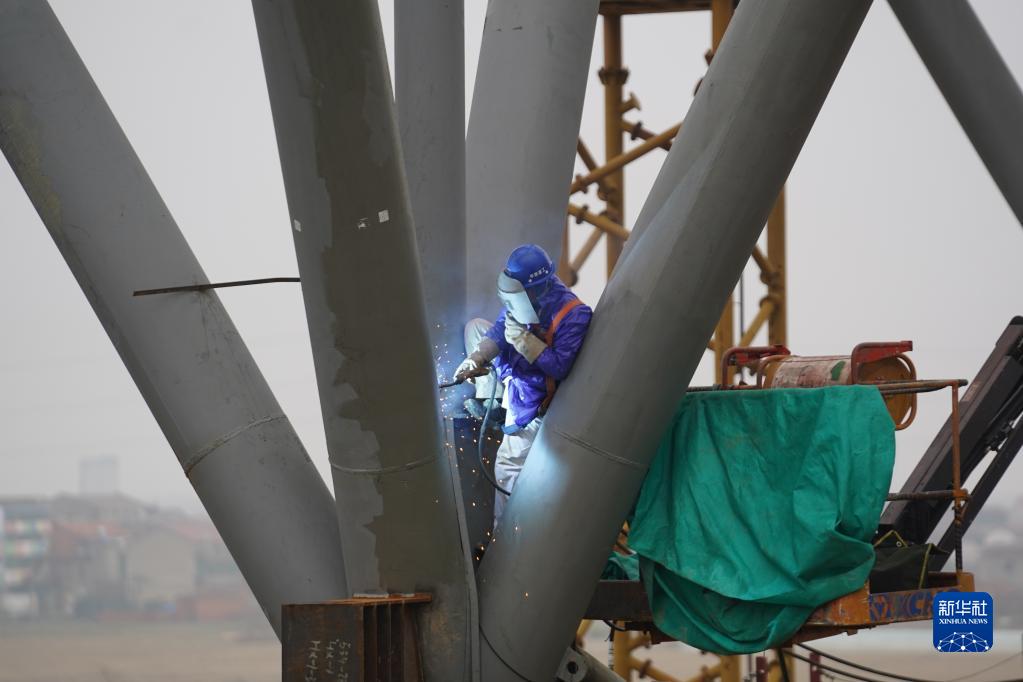 2月10日,工作人員在南昌東站現場(chǎng)施工。