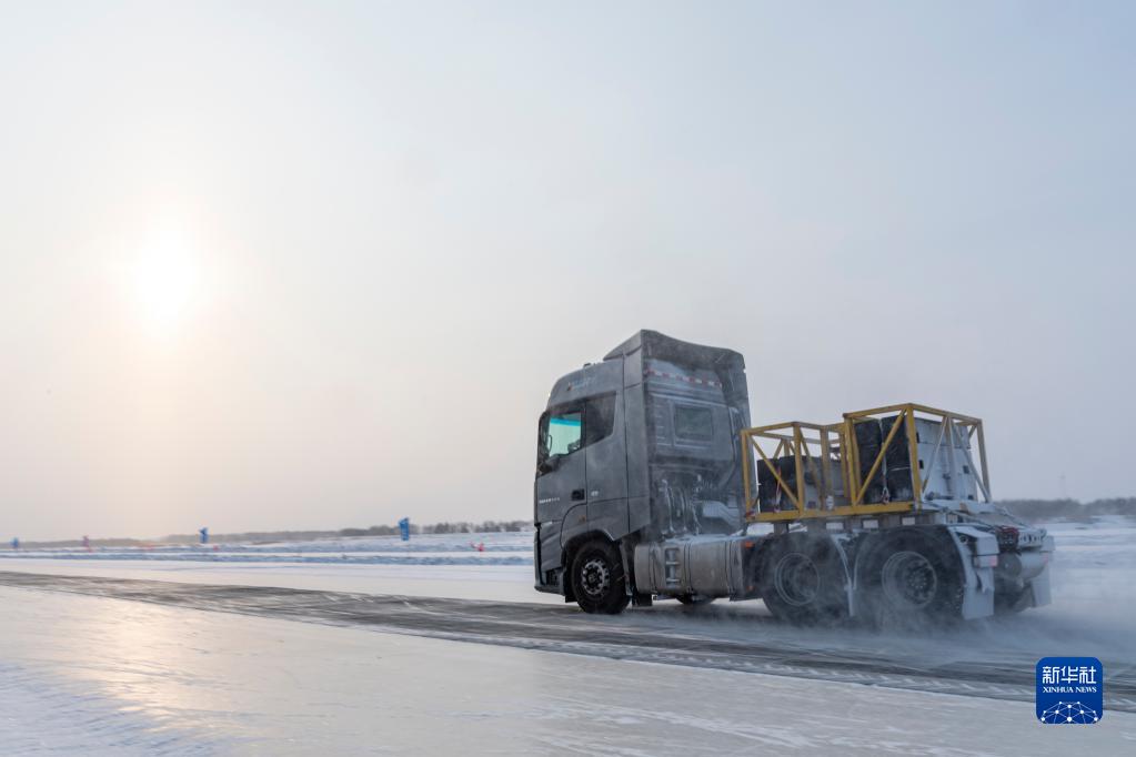 2月10日,在黑河小烏斯力測試基地,車(chē)輛進(jìn)行寒區試驗。