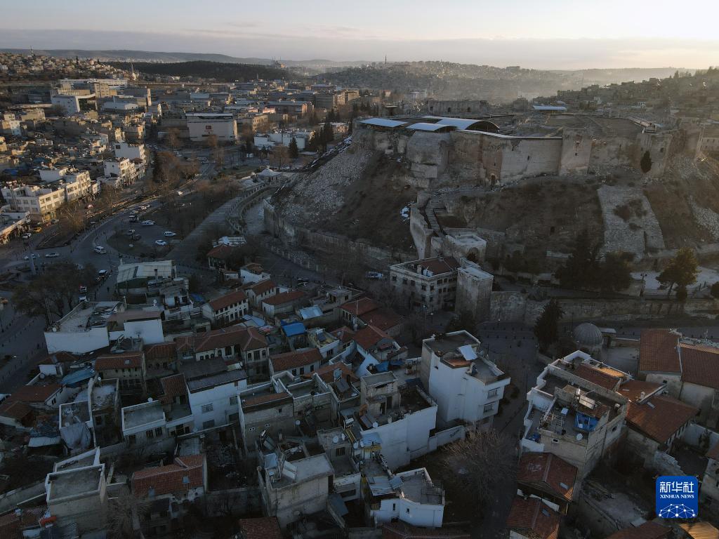 這是2月10日用無(wú)人機航拍的土耳其加濟安泰普古堡。
