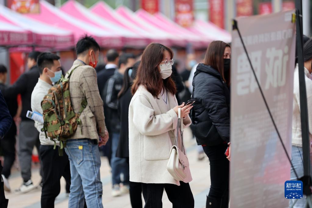 2月11日,求職者在廈門(mén)市集美區春風(fēng)行動(dòng)暨就業(yè)援助月招聘會(huì )上了解就業(yè)信息。