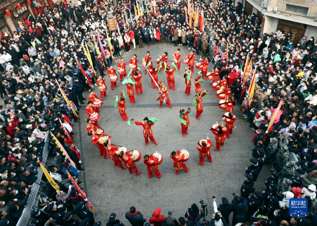 2月6日是農歷正月十六,在河南省??h舉行的正月古廟會(huì )上,幾十支社火團隊輪番表演,踩高蹺、扭秧歌、耍獅子,鑼鼓喧天,熱鬧非凡,形成一道富有特色的中原文化景觀(guān)。