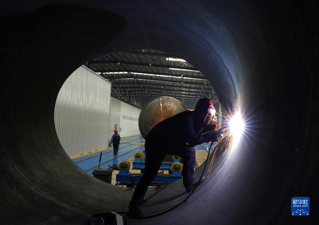 2月11日,工人在河北省唐山市海港經(jīng)濟開(kāi)發(fā)區一家裝備制造企業(yè)生產(chǎn)車(chē)間工作。