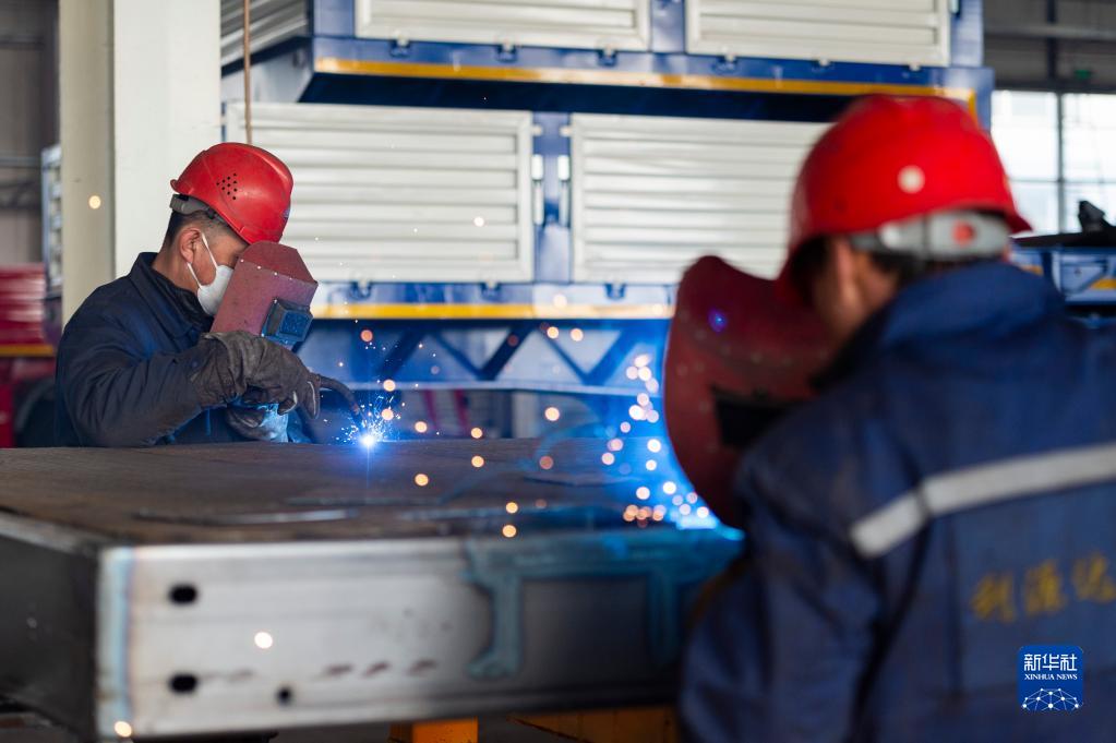 2月11日,在中國(黑龍江)自由貿易試驗區黑河片區,黑河市利源達專(zhuān)用車(chē)制造有限公司的工人在生產(chǎn)作業(yè)。