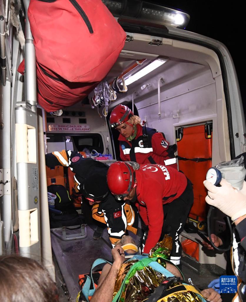 2月11日,救援人員在土耳其哈塔伊省安塔基亞市轉移幸存者。