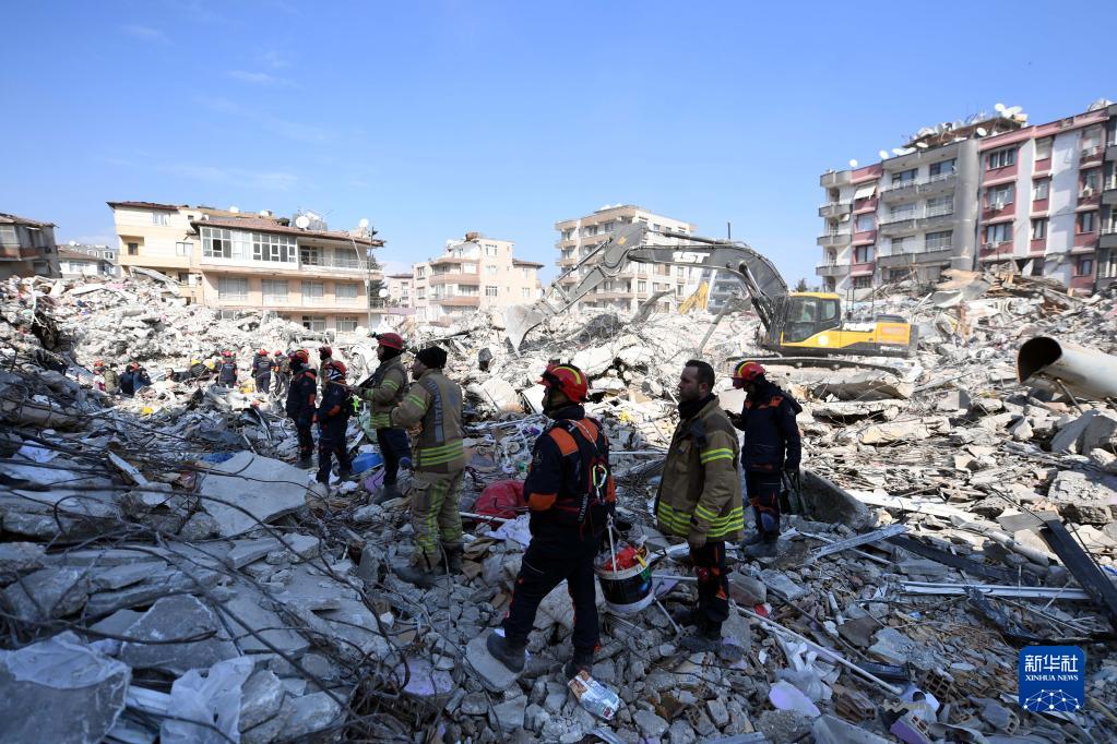 2月11日,救援人員在土耳其哈塔伊省安塔基亞市參與搜救。