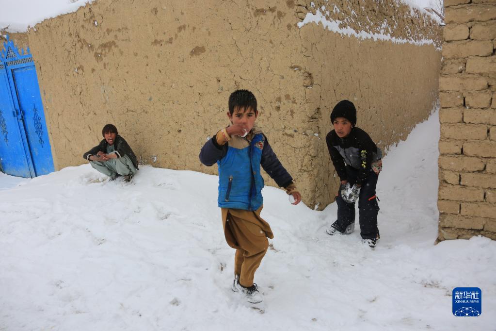 2月9日,孩子們在阿富汗巴米揚省的雪地上玩耍。