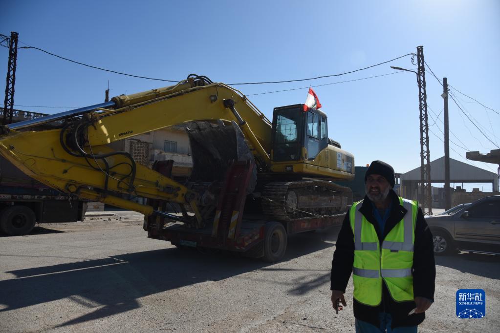 2月11日,黎巴嫩救援機械準備通過(guò)邊境的阿里達口岸進(jìn)入敘利亞。