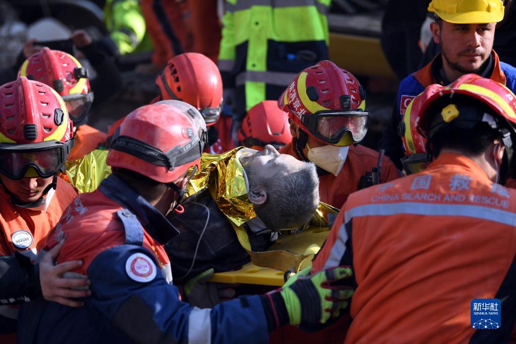當地時(shí)間12日下午,正在土耳其哈塔伊省安塔基亞市實(shí)施搜救的中國救援隊營(yíng)救出一名幸存者。