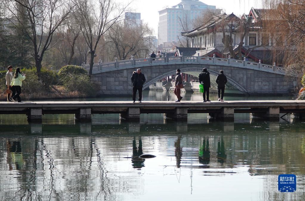 2月14日,山東省濟南市天下第一泉風(fēng)景區,游客在大明湖游覽。