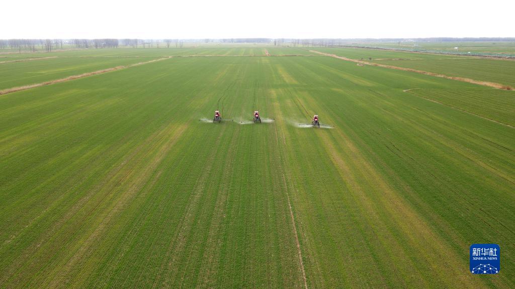 近日,安徽省蚌埠市五河縣頭鋪鎮村民搶抓農時(shí)進(jìn)行小麥春管作業(yè),田間地頭一派農忙景象。