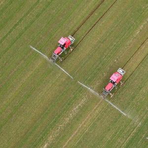2月14日,在安徽省蚌埠市五河縣頭鋪鎮,農民駕駛農機給小麥噴灑農藥(無(wú)人機照片)。