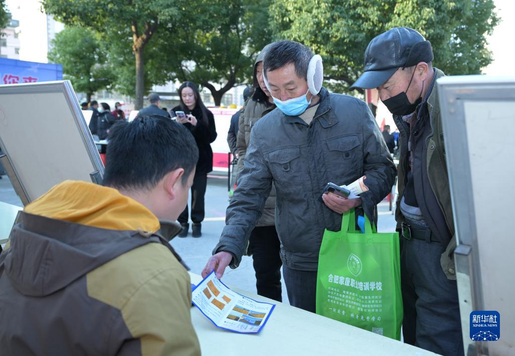2月15日,求職者在合肥市包河區常青街道凌大塘臨工集散中心舉行的招聘會(huì )上了解崗位信息。