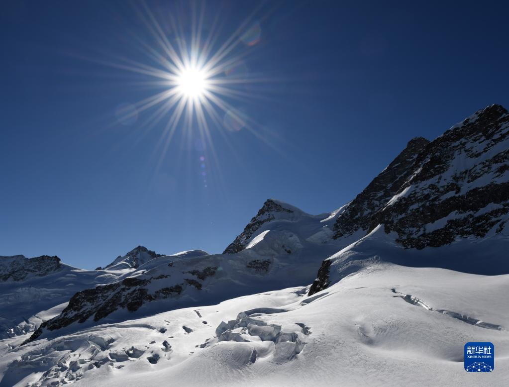 這是2月14日在瑞士少女峰斯芬克斯觀(guān)景臺拍攝的阿萊奇冰川。