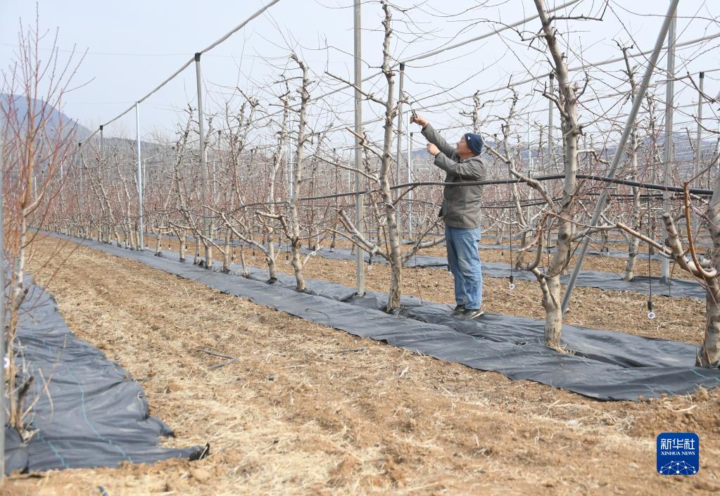 2月15日,果農在北京市峪口鎮西營(yíng)村“未來(lái)果園”剪枝。