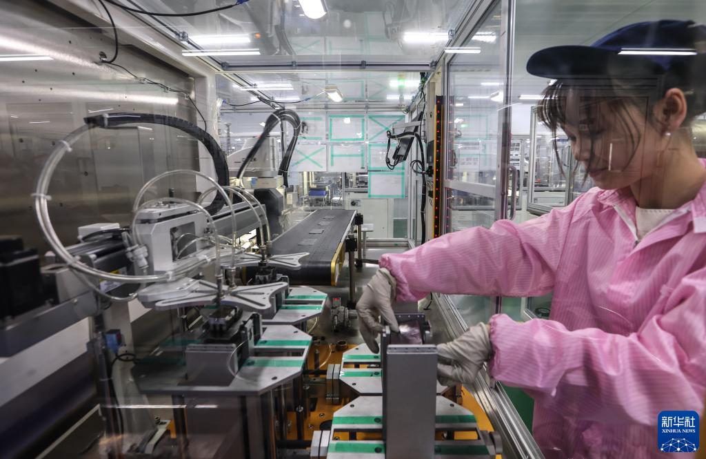 常州富烯科技股份有限公司貼膜車(chē)間工人生產(chǎn)石墨烯導熱膜(2月14日攝)。