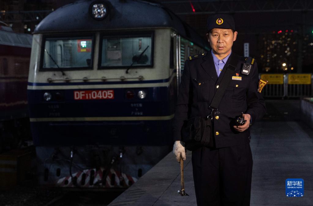 夜色中,K4618次列車(chē)緩緩駛出。李金文和同車(chē)另一名車(chē)輛乘務(wù)員凌耀輝每4小時(shí)輪換著(zhù)從車(chē)頭到車(chē)尾進(jìn)行一次車(chē)廂內巡檢打卡。在沿途安康站、信陽(yáng)站、蕪湖站、南京站等站的機車(chē)調換車(chē)頭時(shí)間,他們倆還要負責列車(chē)一頭一尾,對列車(chē)進(jìn)行“轉交巡”。