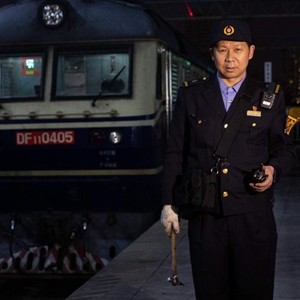 2月13日,在成都西站,從成都開(kāi)往上海的春運增開(kāi)臨客K4618次列車(chē)乘務(wù)員李金文開(kāi)始出車(chē)前的準備工作,他清點(diǎn)工具、巡檢設備,動(dòng)作十分嫻熟。
