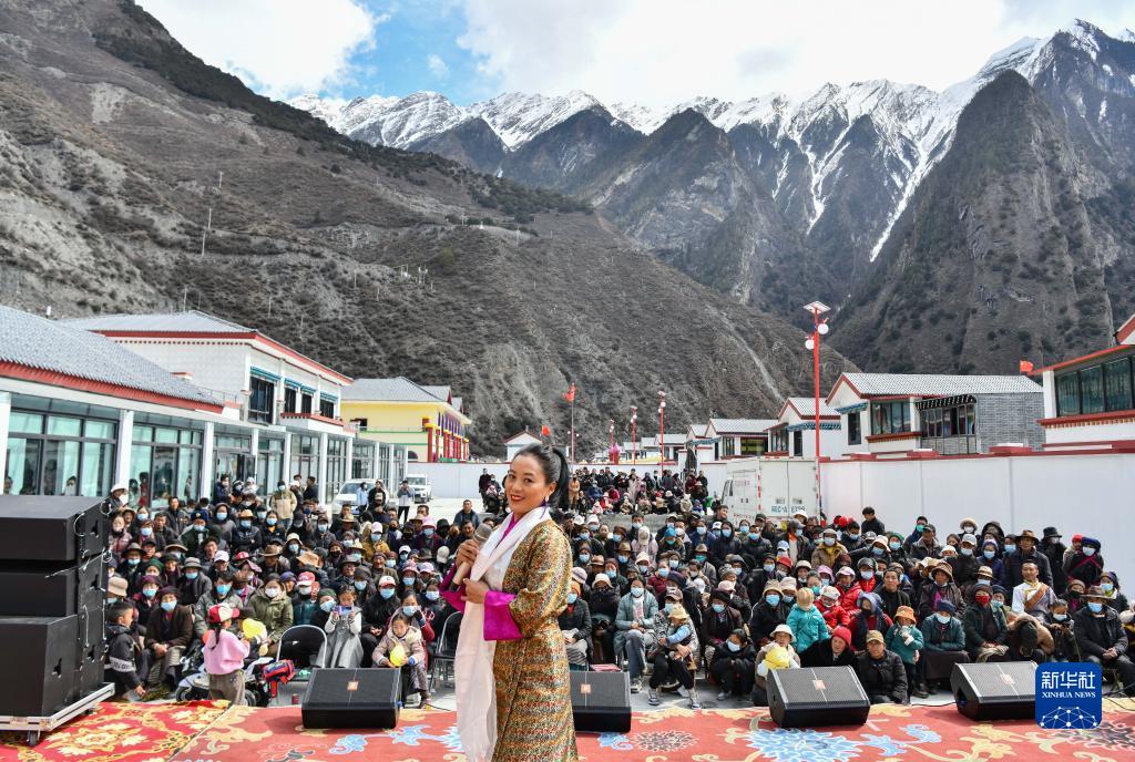 當日,西藏山南市隆子縣藝術(shù)團來(lái)到隆子縣斗玉珞巴民族鄉繞讓搬遷安置點(diǎn)開(kāi)展迎接藏歷新年文藝演出。據悉,該安置點(diǎn)的群眾于2023年1月上旬完成搬遷入住,他們將在新家迎接即將到來(lái)的藏歷新年。