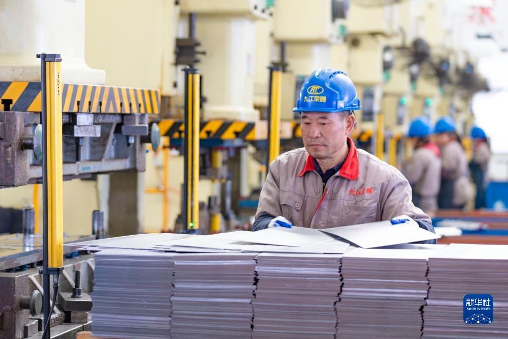 2月15日,在江西省廬山市工業(yè)園區一家汽車(chē)部件生產(chǎn)企業(yè)的車(chē)間里,工人生產(chǎn)汽車(chē)零部件。