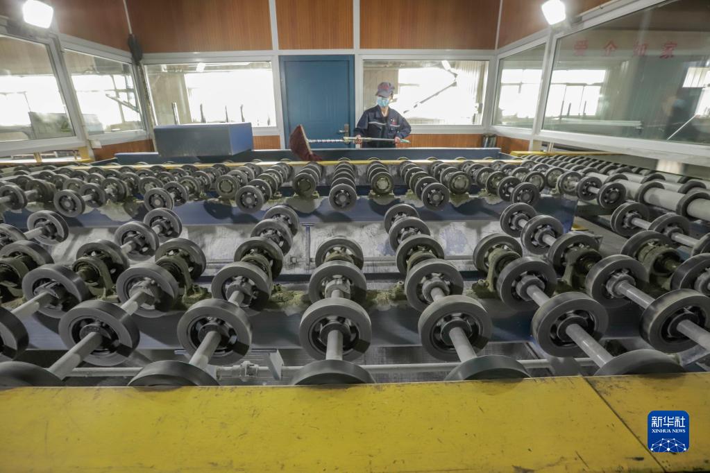 2月15日,工人在河北省唐山市遷西縣一家玻璃生產(chǎn)企業(yè)內工作。