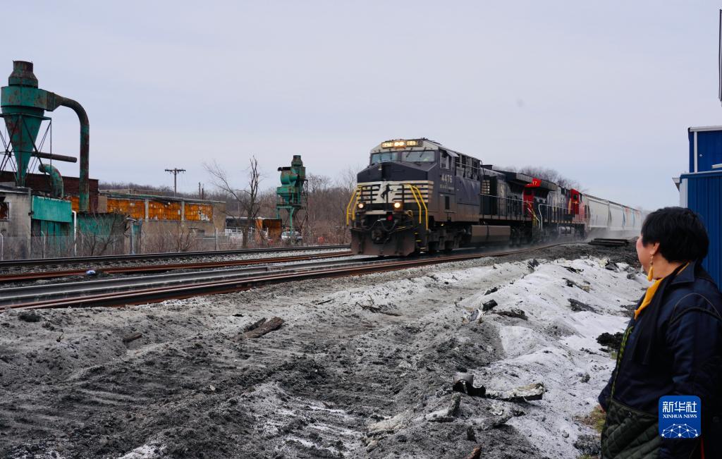 2月14日,諾??四戏借F路公司貨運列車(chē)駛過(guò)美國俄亥俄州東巴勒斯坦鎮。