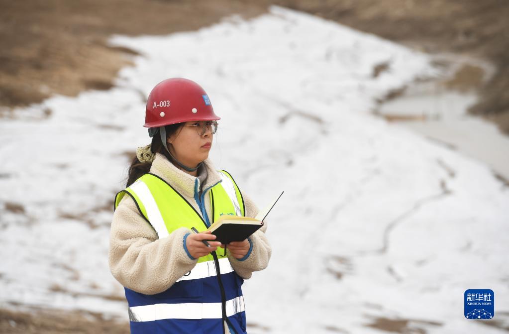 楊鑫博在雄安唐河河谷郊野公園項目現場(chǎng)工作(2月15日攝)。
