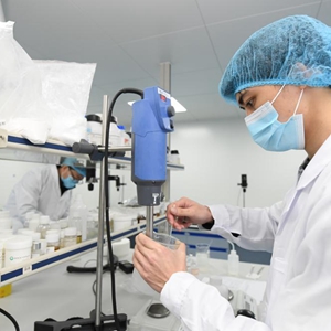 2月16日,在美妝小鎮一家小微化妝品企業(yè),工作人員在實(shí)驗室進(jìn)行新產(chǎn)品的檢測研發(fā)。