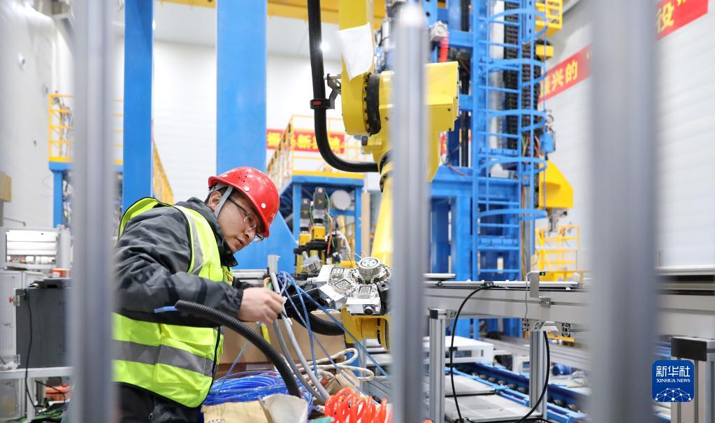 2月16日,工人在即將完工的特高壓套管研制基地內進(jìn)行設備安裝。