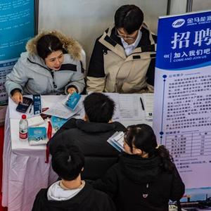 2月16日,學(xué)生在西安建筑科技大學(xué)2023屆畢業(yè)生春季就業(yè)洽談會(huì )上尋找合適的崗位。
