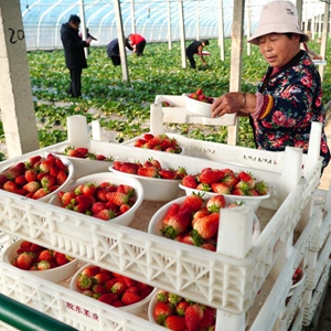 近日,山東省泰安市東平縣大棚內種植的草莓陸續成熟,當地村民忙著(zhù)收獲草莓,供應各地市場(chǎng)。