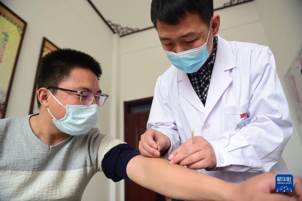 2月16日,孟村回族自治縣孟村鎮衛生院“國醫堂”中醫為患者進(jìn)行針灸治療。