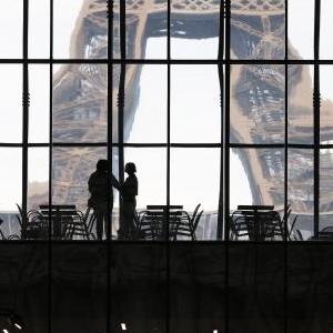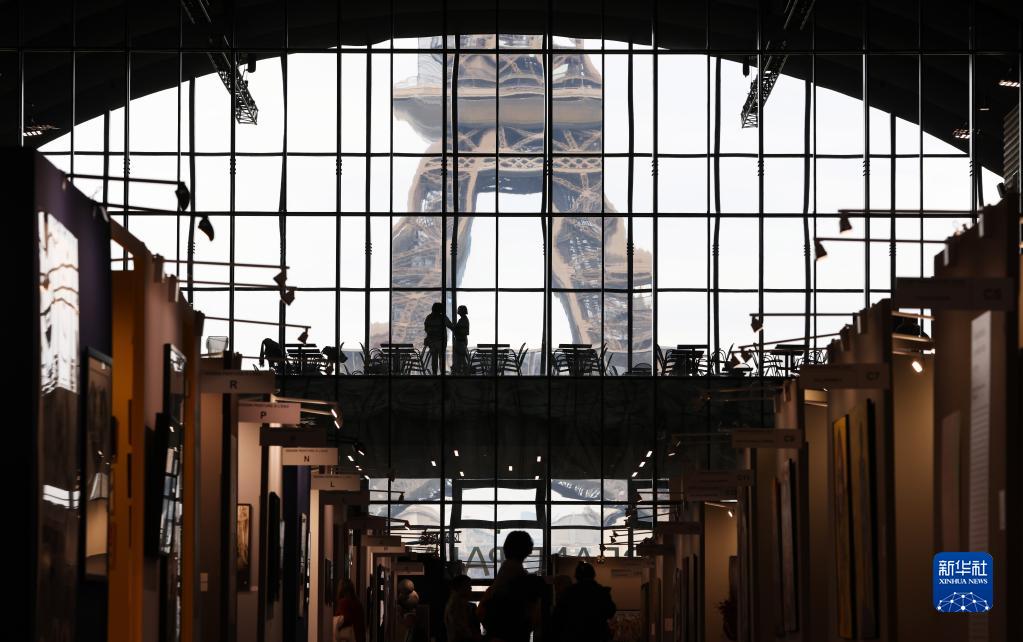 2月16日,在位于法國巴黎埃菲爾鐵塔附近的臨時(shí)大皇宮,人們在A(yíng)RT CAPITAL藝術(shù)展上參觀(guān)。