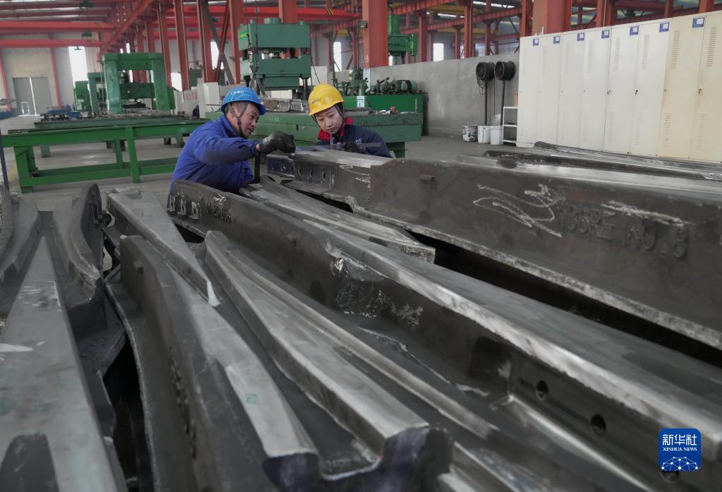 2月16日,工人在秦皇島市一家鐵路道岔生產(chǎn)企業(yè)的車(chē)間工作。